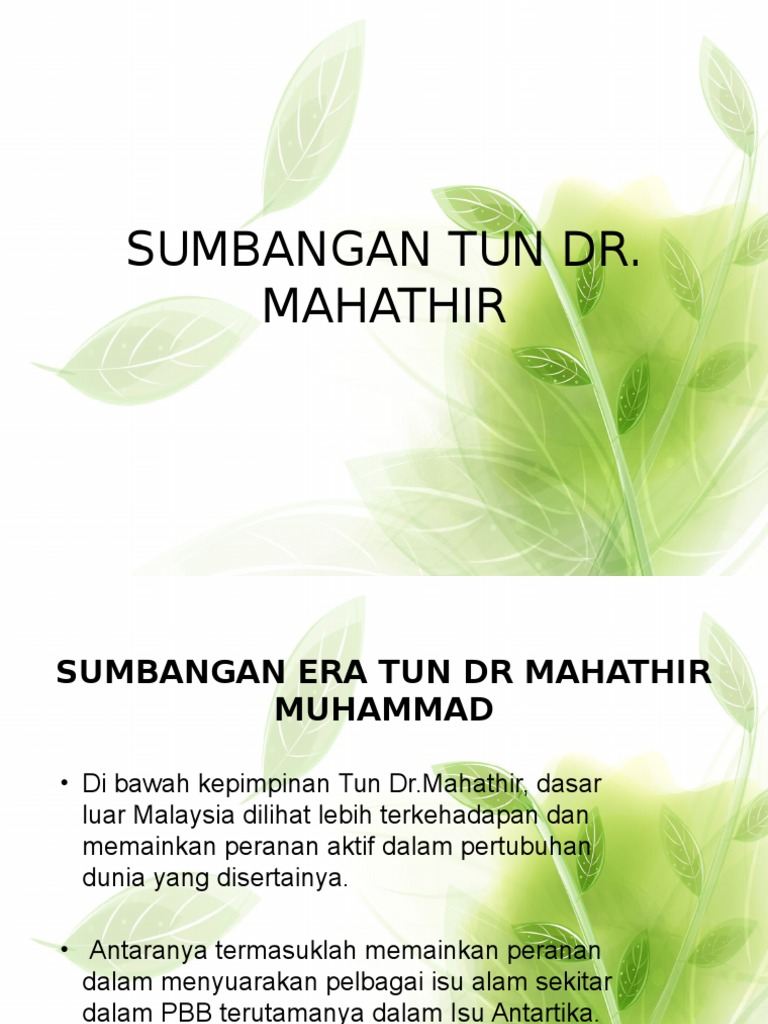 Bagi Tun Dr Mahathir tanpa ilmu pengetahuan ummah tidak akan dapat mempertahankan diri daripada pencerobohan musuh. SUMBANGAN TUN DR MAHATHIR Pengenalan Beliau Dilahirkan pada 20 Disember 1925 di Kedah. Interested in flipbooks about Tun Dr.